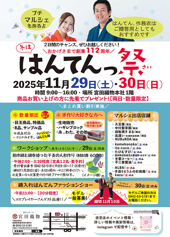 福岡 筑後:宮田織物本社「はんてんっ祭(さい)」2025.11.29-30