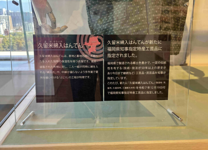 「久留米綿入はんてん」として福岡県知事指定特産民工芸品に指定されました。