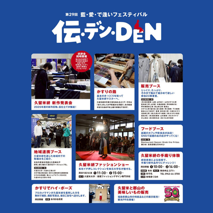 福岡:久留米地域地場産業振興センター「伝・デン・DEN (第29回 藍・愛・で逢いフェスティバル)」2026.03.14-03.15